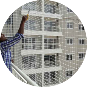 We are the skilled experts in fixing Safety nets for Balcony Safety Nets, Pigeon Safety Nets, Anti Bird Nets, Pigeon Nets for Balconies, Cricket Net Practice, Children Safety Nets, Construction Safety Nets, Duct Area Safety Nets, Building Safety Nets, Industrial Safety Nets, Swimming Pool Safety Nets Stairway Safety nets, Monkey Safety Nets, Terrace Top Nets, Glass Safety Nets, Car Parking Safety Nets, Coconut Tree Nets, All types of Safety Nets, HDPE Nets - Nylon Nets.